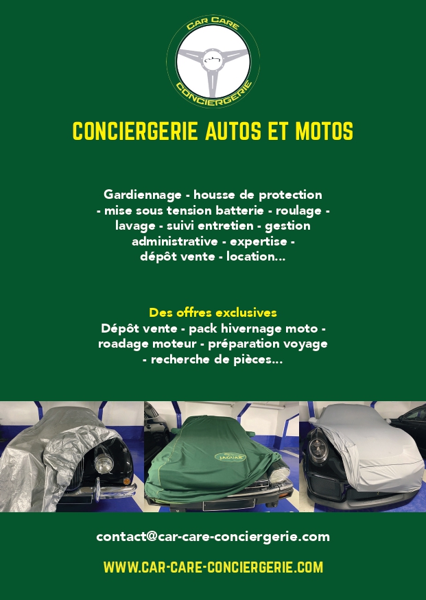 En dehors de ces activitées de gardiennage et de parking sécurisé, Car Care Conciergerie, propose à ses clients des occasions de rouler, en étant partenaire de séance de roulages sur circuit, en organisant des rallyes touristiques en voiture de collection et en voiture de prestige (luxe) ou en voiture de sport ( GT de tourisme, Supercar), amis aussi des roadbook pour des roadtrip inoubliables. des organisation de voyages en Europe avec ou sans location de en voitures anciennes.