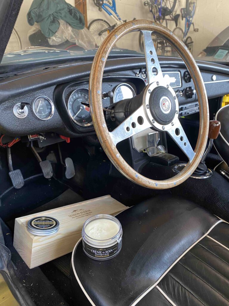Une bâche assure la protection contre la poussière (et les regards indiscrets), le traditionnel lavage à la main est proposé avec des produits éco responsables et respectueux des matériaux. l’entretien de la sellerie cuir est pratiquée comme un spa avec là encore des produits nourrissants non agressifs mais tout aussi efficaces. Un partenaire covering peut lui aussi venir à la recousse.